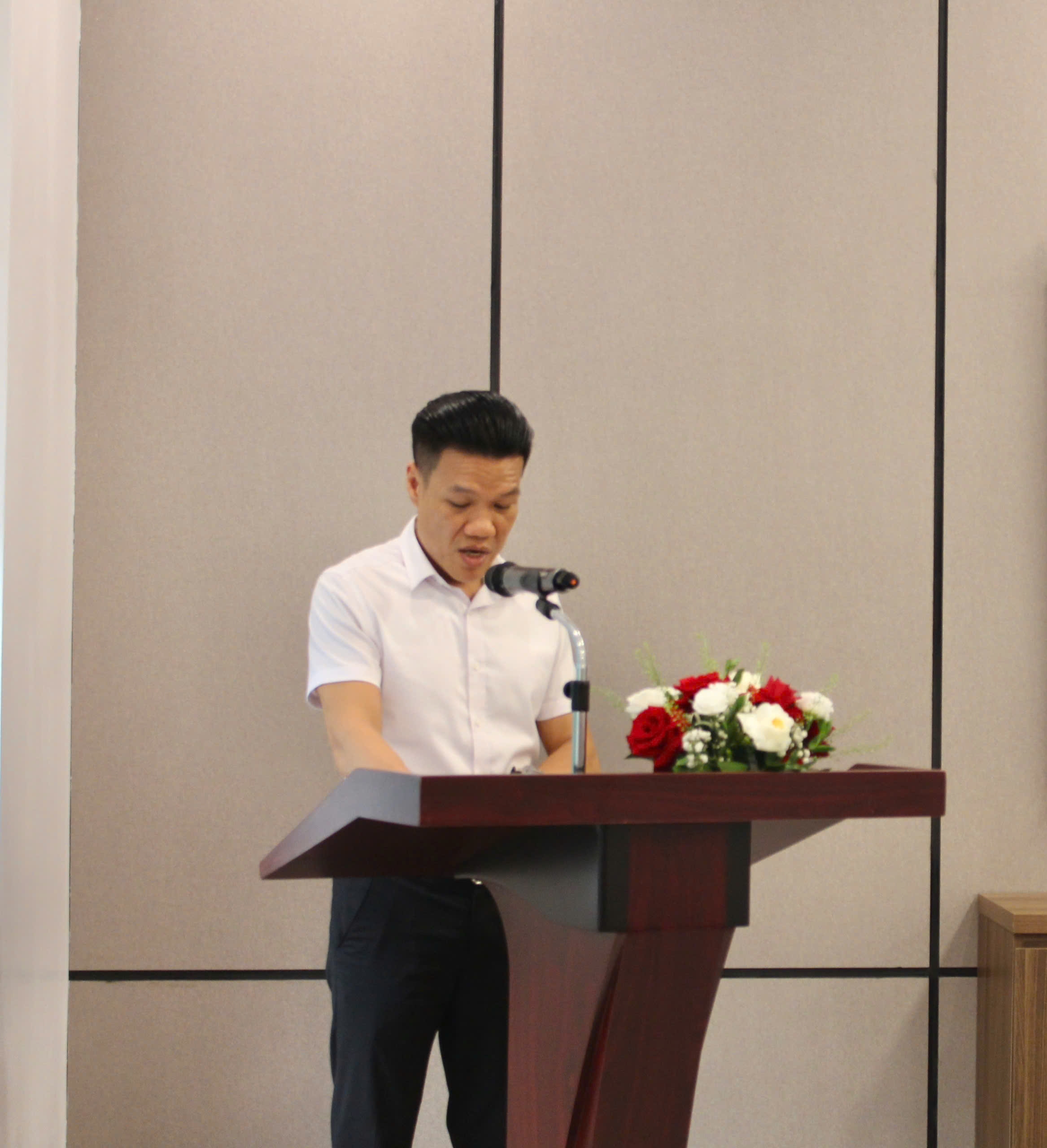 (Ông Đỗ An Huy – Giám đốc Công ty đọc Báo cáo kết quả thực hiện sản xuất kinh doanh năm 2025 và kế hoạch sản xuất kinh doanh năm 2026)